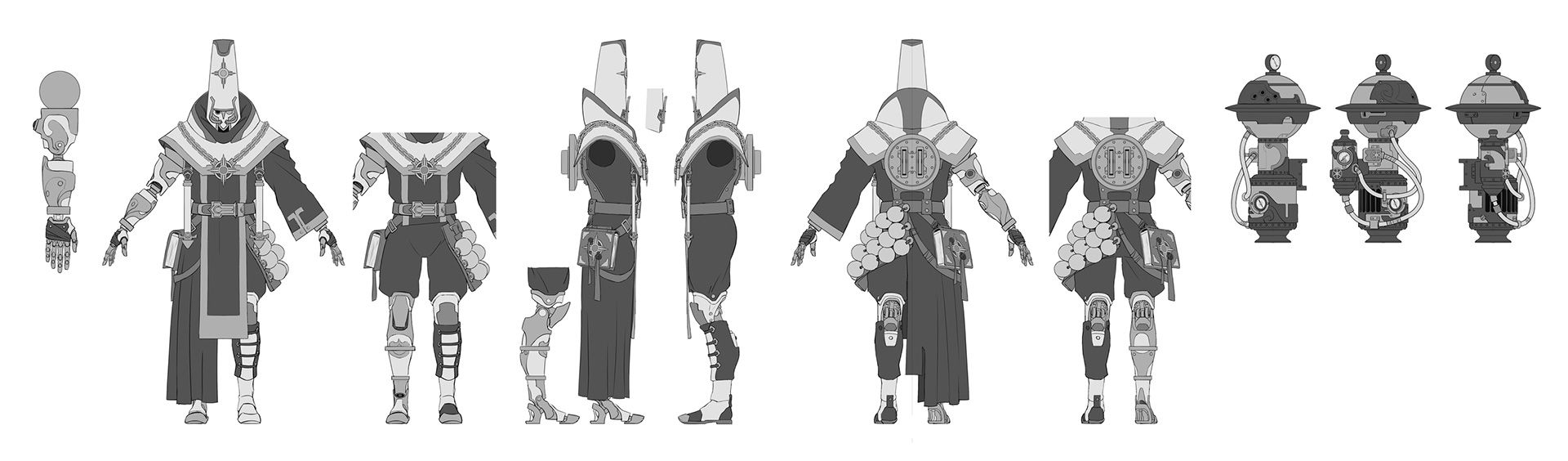 “The design of the Technomancer is based on Technomancy, the seventh and most recent school of the Source to emerge in Ashkenon, of which he is the representative,” explains Gregorie Diaconu, Game Director of Spellcasters Chronicles. “This idea of modern magic inspired us to imagine a caste of Sorcerers who lack the Gift possessed by other Spellcasters, but who have forged their own magic through science. And to achieve this goal, the Technomancer had to rid himself of what made him human: his emotions, his memories, his feelings.”
