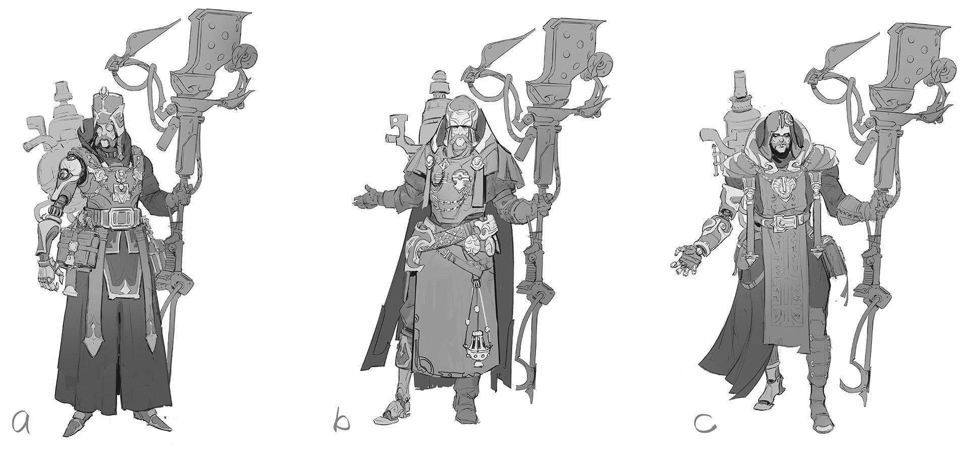 Like the Stone Shaman shaped by the Mountains of Kamazad, the Technomancer has seen both his appearance and abilities molded by his environment. “The idea of a fully mechanically enhanced being who, ironically, considers himself more human than the other Spellcasters who possess a supernatural Gift, felt particularly fascinating to us,” adds Gregorie, who wanted to make this character truly unique, both in appearance and in abilities.